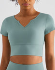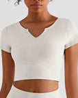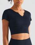 Embrace the allure of simplicity with our sleek V-neck shorts sleeves. Crafted with a clean, bare-essentials design, this piece effortlessly transitions from casual to chic.