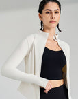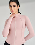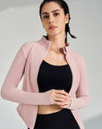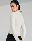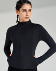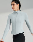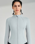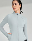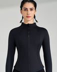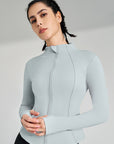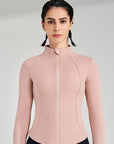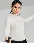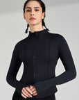 Basic stand up collar zipper elastic slim fit long sleeves