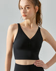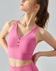 Basic V-neck button cross straps light support tank tops